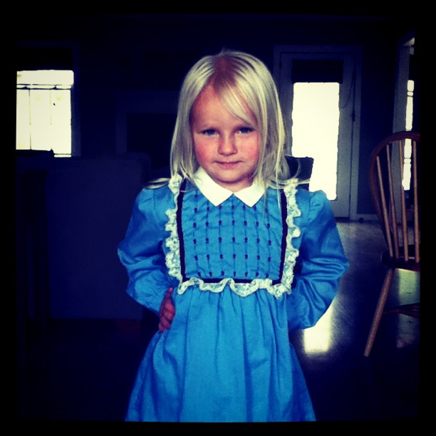 As I was cleaning up the lunch dishes the other day, I heard clack, clack, clack on the floor...a tell tale sign Rowyn is in heels. Little did I know the extent of her getup.